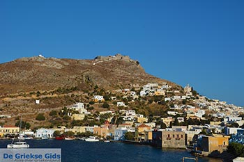 Na anderhalf uur varen, arriveren we bij Agia Marina. Mijn eerste indruk bij het zien van het stadje is zeer positief. Leuke terrasjes, kleurrijke gebouwen, overal vissersbootjes en zeilbootjes. Boven op de berg het indrukwekkende kasteel van Leros! Wat zal het uitzicht van daarboven mooi zijn. Een kwartiertje later check ik in bij het hotel dat in de wijk Platanos ligt, op een kleine kilometer afstand van de haven. Het uitzicht is oogverblindend. De pittoreske huisjes tegen de hellingen van de berg en daarachter de indrukwekkende kale berg, met op de top het beroemde kasteel van Leros. Nu ik toch de smaak te pakken heb, huur ik weer een scooter. Wat ben ik blij dat ik dat gedaan heb, want er zijn veel smalle straatjes op Leros. Vaak kunnen twee auto’s niet tegelijk langs elkaar rijden! Ik rijd eerst naar de top van de berg Apitichi. Hier staat het beroemde kasteel van Leros en vanaf hier heb je een fantastisch uitzicht over bijna alle uithoeken van het eiland.